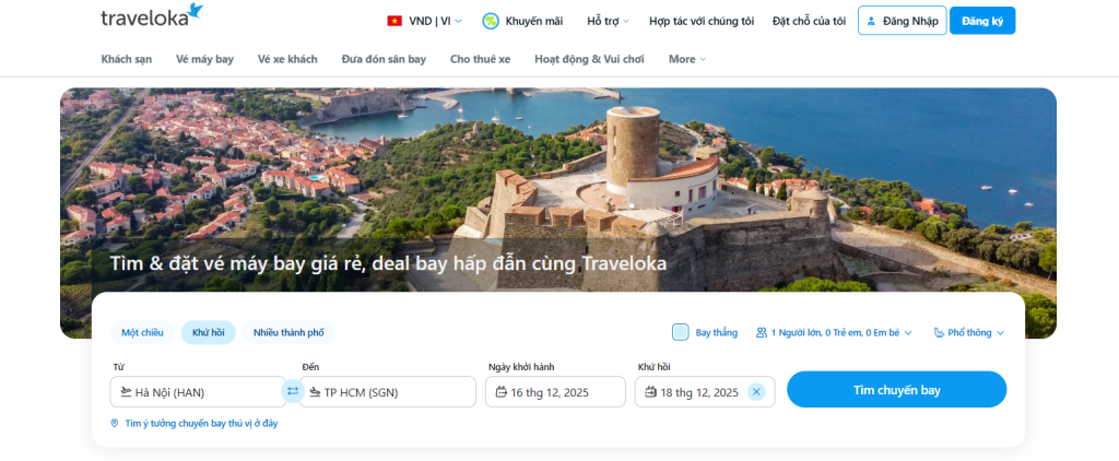 Traveloka là nền tảng du lịch trực tuyến hàng đầu tại Đông Nam Á, giúp người dùng dễ dàng lên kế hoạch cho mọi chuyến đi. Tại đây, bạn có thể đặt phòng khách sạn, thuê xe, tham gia các tour du lịch, đồng thời nhanh chóng book vé Vietjet với thông tin minh bạch về lịch trình, giá vé và các ưu đãi hấp dẫn, mang đến trải nghiệm đặt vé thuận tiện và tiết kiệm tối đa.